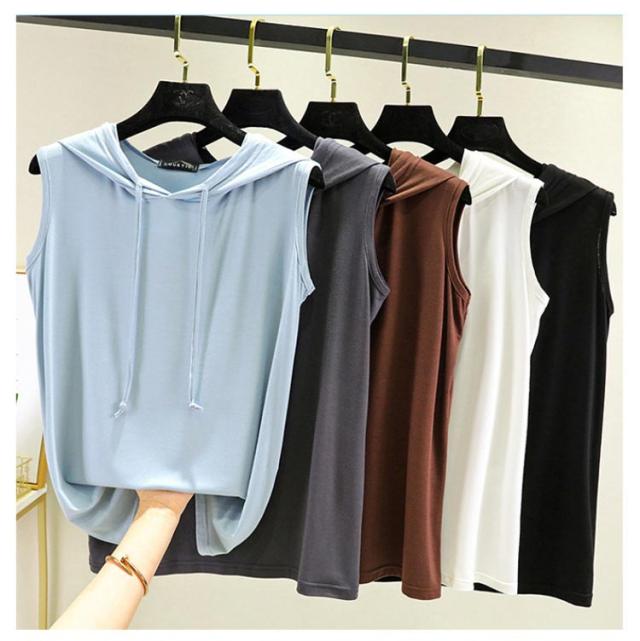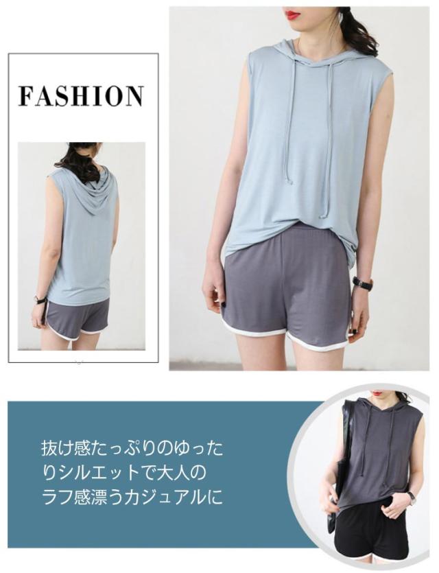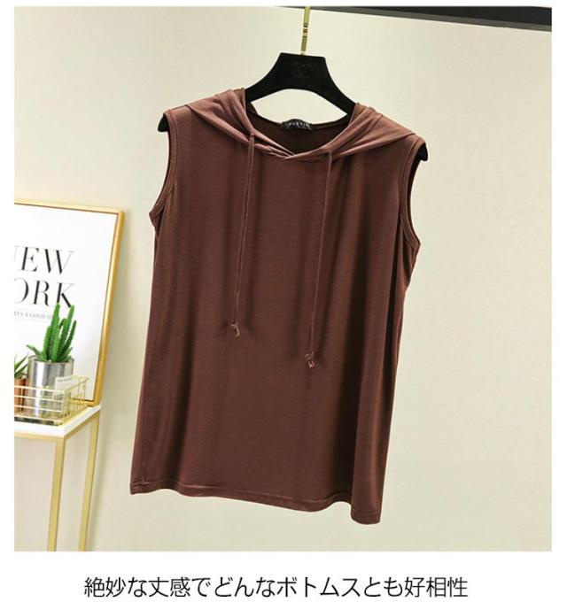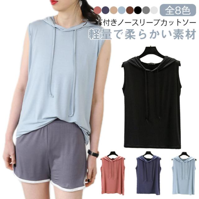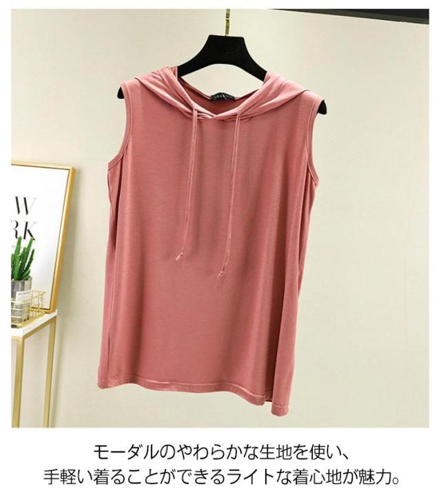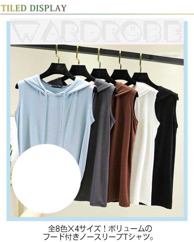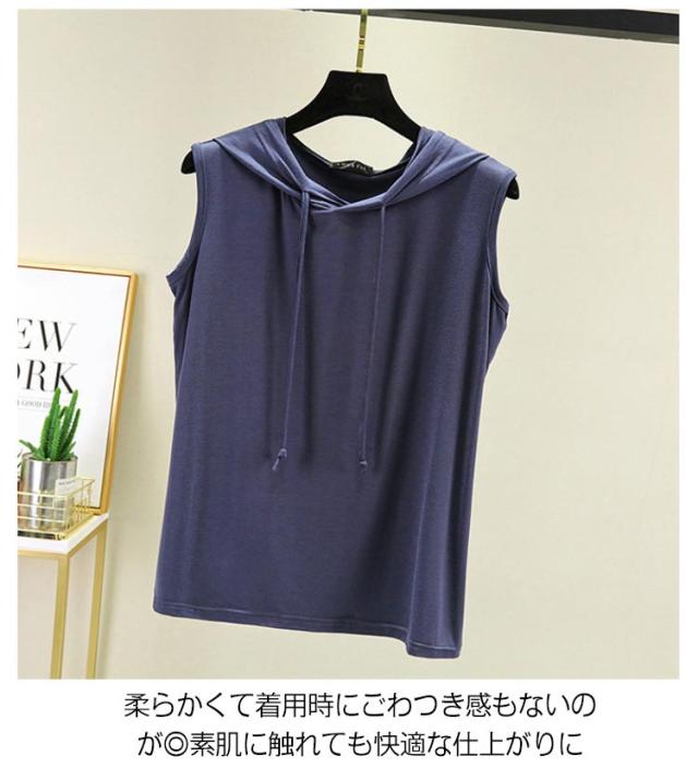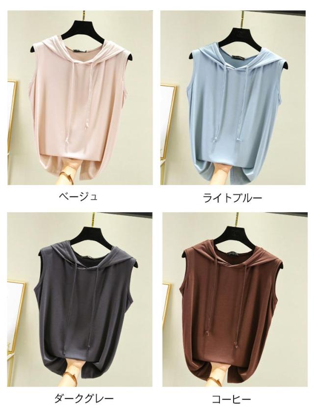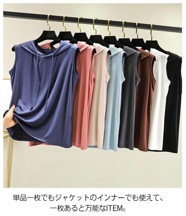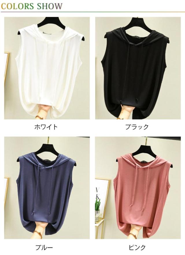 tシャツ ノースリーブパーカー ノースリーブパーカー 夏 カットソー パーカー 袖なし 8色 プルオーバー ベスト ノースリーブtシャツ シンプル 無地 春夏 大きサイズ レイヤード レディース