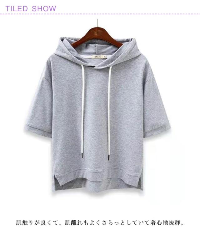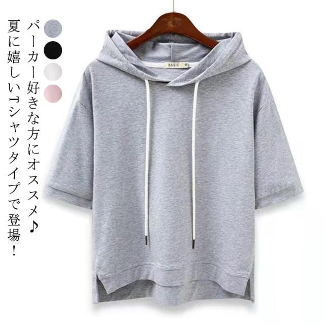 カットソー パーカー 夏パーカー フード付きtシャツ パーカー パーカー 半袖 無地 レディース パーカー プルオーバー ゆったり 春夏 トップス 前後差 フーディTシャツ 無地 シンプル カジュアル おしゃれ ルームウエア 部屋着