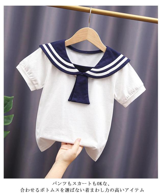 夏 半袖 セーラーカラー お出かけ 子供服 女の子 tシャツ セーラー襟 無地 キッズ トップス 春 こども マリン キッズ リボン 子ども ガールズ 男の子 かわいい 無地 ベビー 女の子 シンプル おしゃれ カジュアル セーラー 可愛い 110 120 130 140