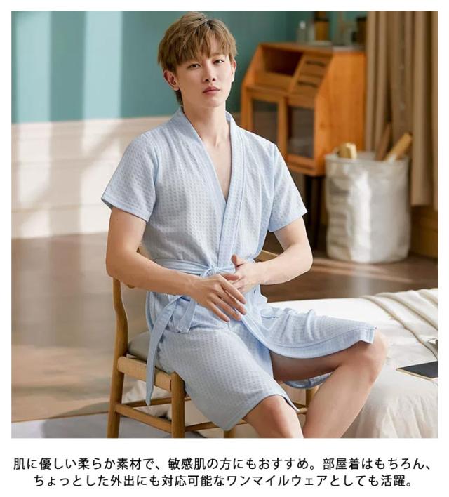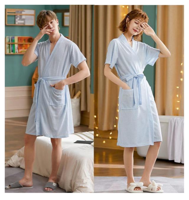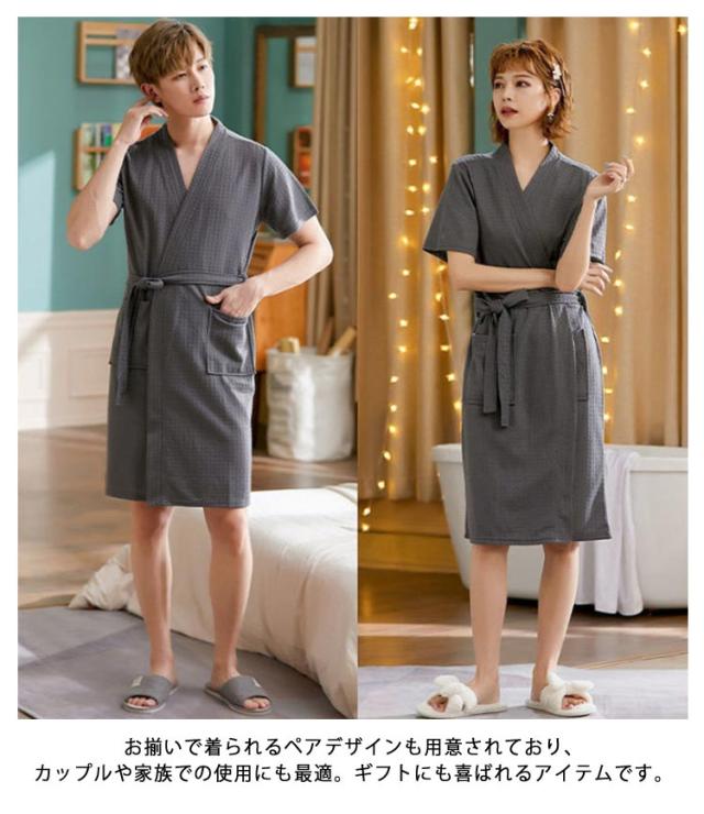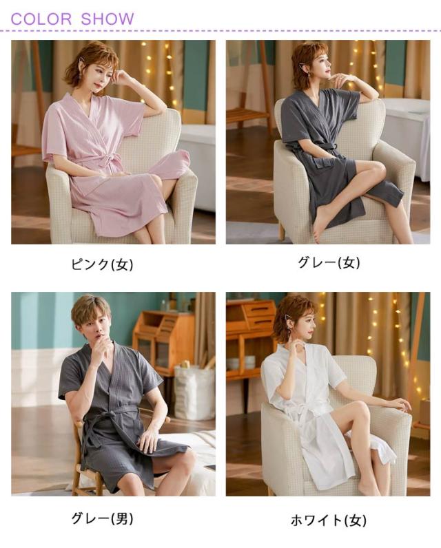 レディース ルームウェア 部屋着 メンズ 夏用 薄手 寝間着 薄手 パジャマ シンプル カップルルームウェア バスローブ リラックスウェア 寝巻き 男女兼用 ホテル用 ルームガウン 通気性 吸汗 柔らかい 無地 おしゃれ