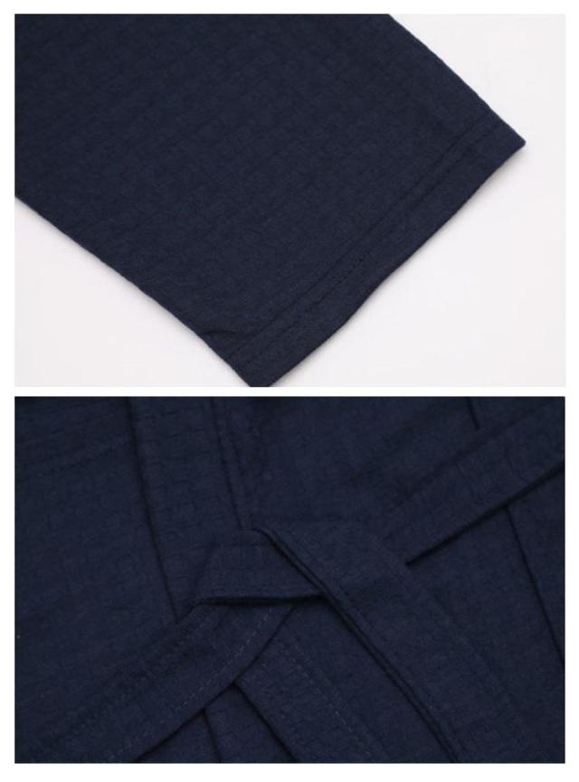 | 暑い季節にぴったりの薄手素材を使用した、ワッフル織りのバスローブ。 シンプルでスタイリッシュな無地デザインは、男女問わず着用可能。美容院やホテル、スパなど業務用としてもおすすめ。 ウエストは調節可能なベルト付きで、体型や好みに合わせてフィット感を調整可能。リラックスシーンにもぴったり。 ゆったりとしたシルエットで、ストレスのない着心地。動きやすさと肌へのやさしさを両立した一枚です。 半袖・ノーカラーデザインで見た目もすっきり。シャワー後やお風呂上がりにさっと羽織れる手軽さが魅力です。 肌に優しい柔らか素材で、敏感肌の方にもおすすめ。部屋着はもちろん、ちょっとした外出にも対応可能なワンマイルウェアとしても活躍。 お揃いで着られるペアデザインも用意されており、カップルや家族での使用にも最適。ギフトにも喜ばれるアイテムです。 | |
