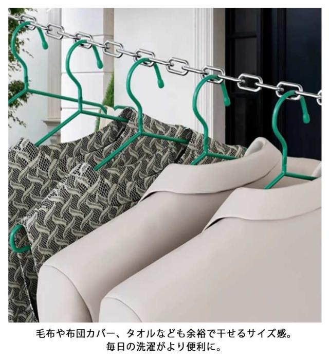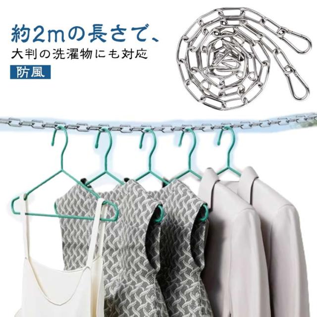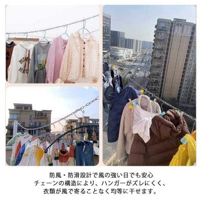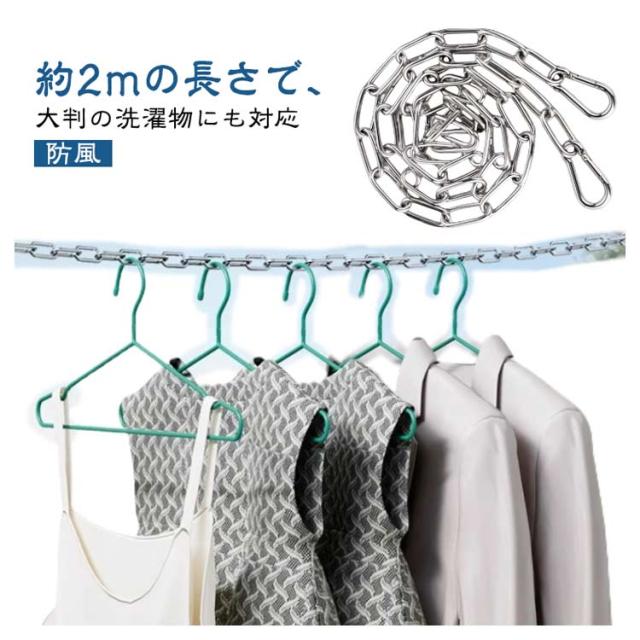 屋外物干し 物干しロープ 洗濯ロープ 洗濯ロープ 室外用物干し チェーンロープ ベランダ物干し ハンガーチェーン 洗濯物干し 室内物干し 便利グッズ 風に強い物干し 洗濯用品 家庭用