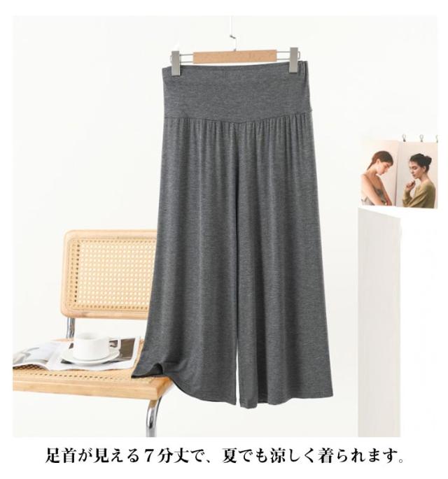 ハイウェスト 7分丈 ステテコパンツ 夏 ハイウェスト 春 ワンマイル ステテコ ハーフパンツ レディース ルームパンツ ワイドパンツ 腹巻付き マタニティ イージーパンツ 部屋着 薄手 大きいサイズ ゆったり ルームパンツ 涼しい
