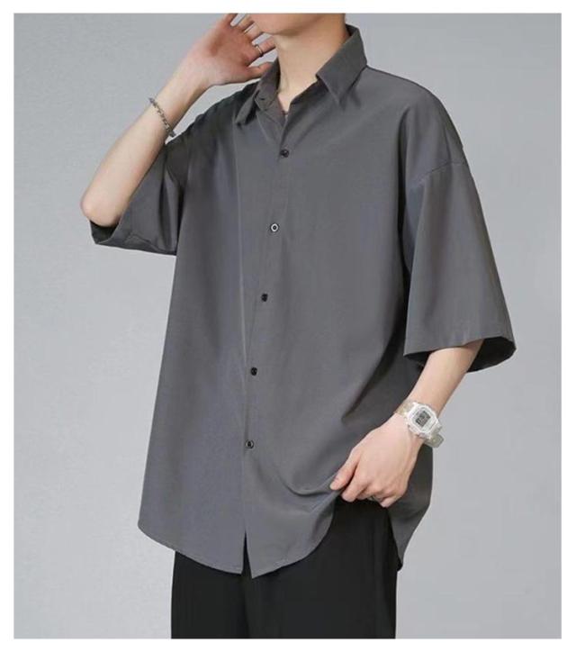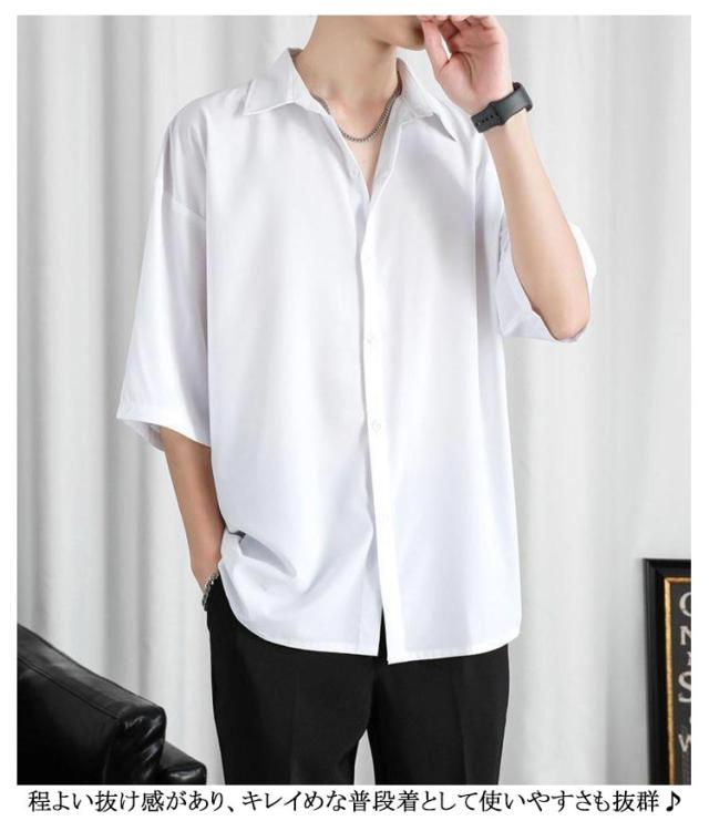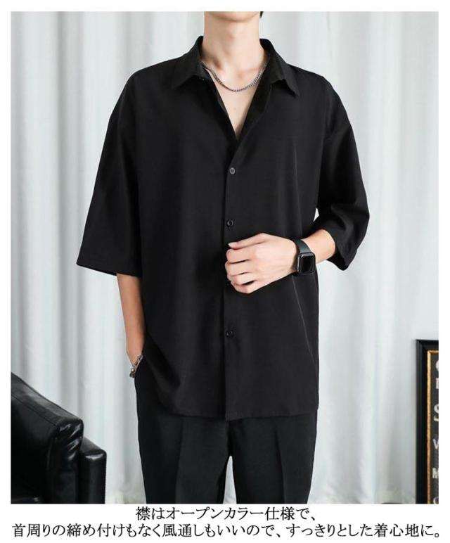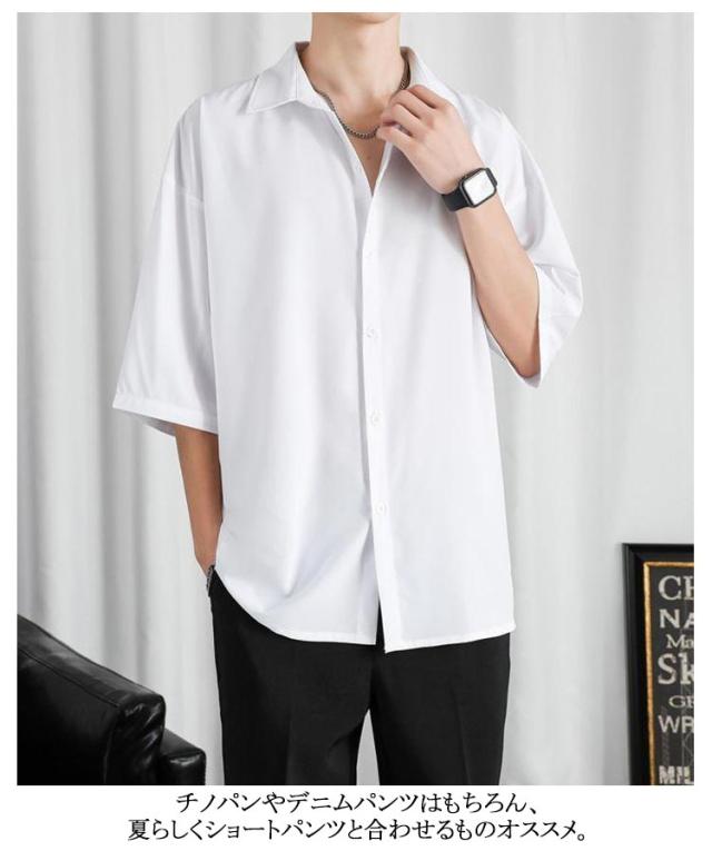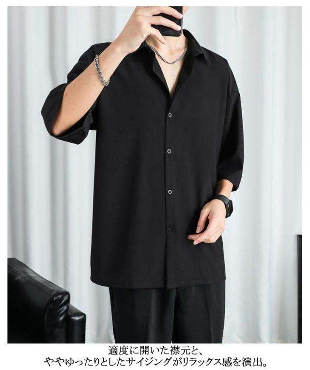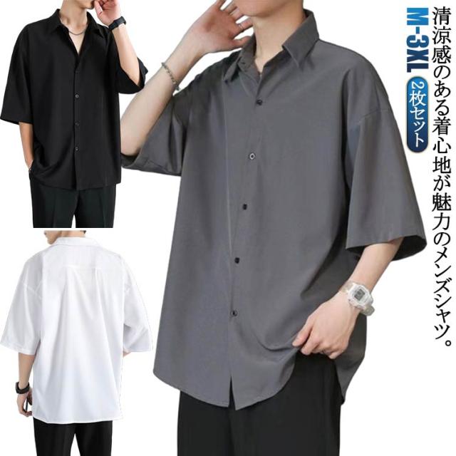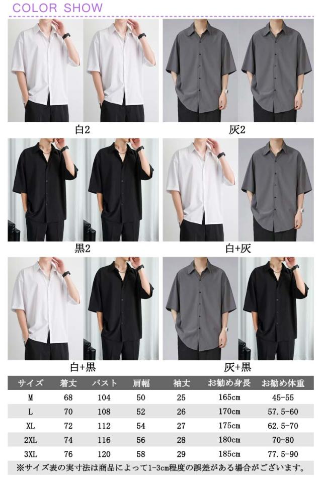 長袖 シャツ 2枚セット!七分袖 接触冷感 2枚セット!七分袖 半袖 アイスシルク 夏 無地 夏 前開き 涼しい ブラック 白 黒 グレー ホワイト メンズ 大きいサイズ ゆったり ひんやり カジュアルシャツ