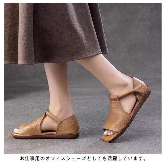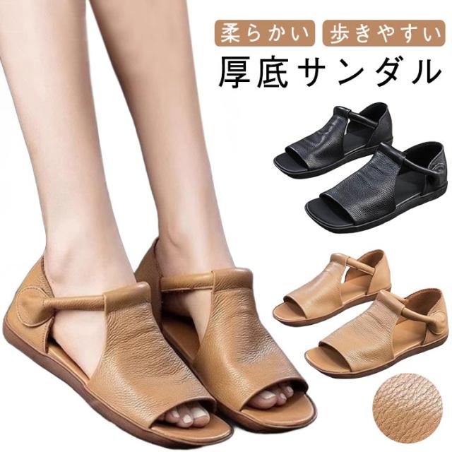 軽量 大きいサイズ 厚底サンダル レディース レザー 歩きやすい フラット 疲れない 春夏 夏 厚底サンダル レザーシューズ レザーサンダル 柔らかい メッシュ ストラップサンダル 通気 痛くない靴 歩きやすい 美脚 通勤 おしゃれ