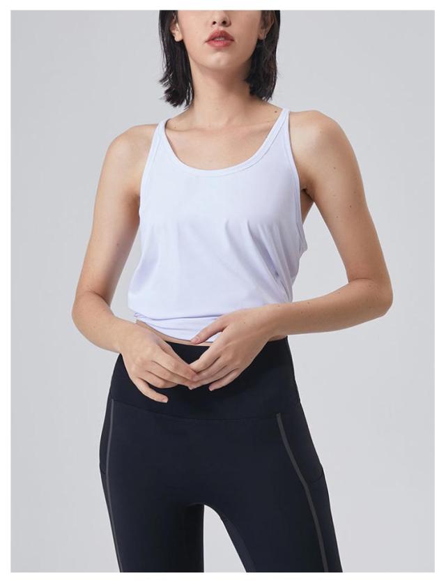 ミドル丈 ラウンドネック 吸汗 めくれ ゆったり タンクトップ トップス ヨガウェア ない レディース 速乾 ヨガトップス ピラティスウェア ジムウェア きれいめ タック ストレッチ 無地 春 薄手 ノースリーブ シンプル 黒 白 ヨガウェア 夏 秋 スポーツウェア