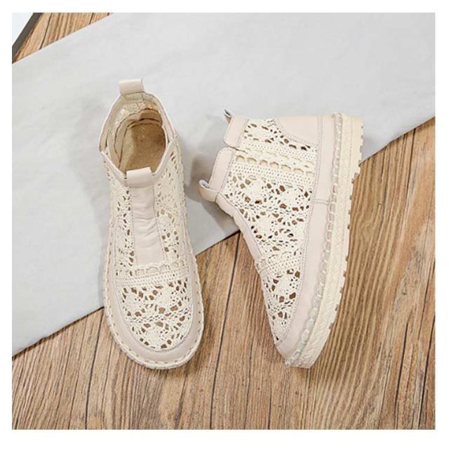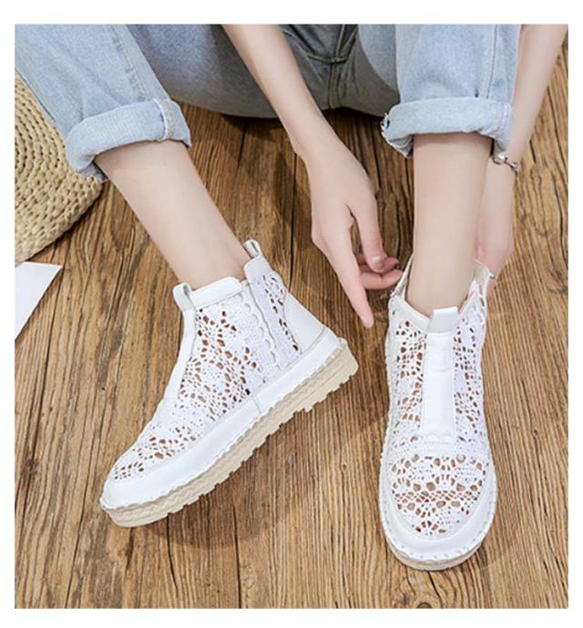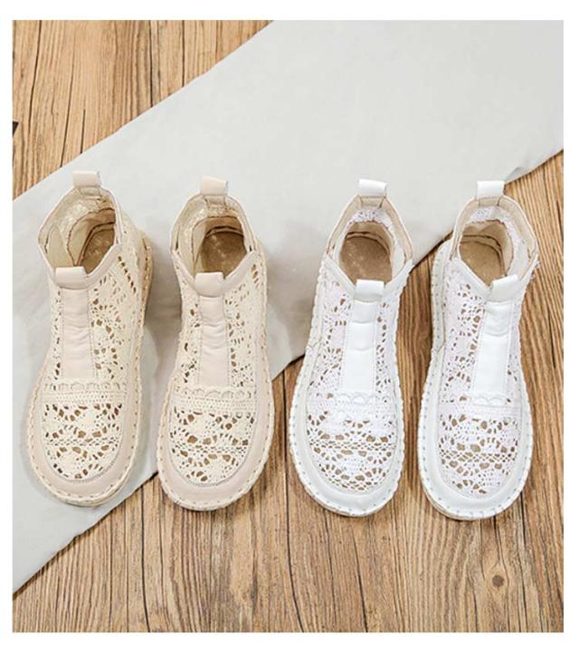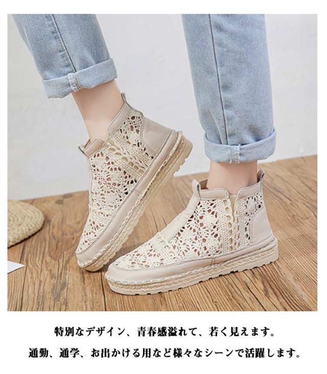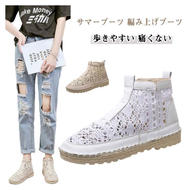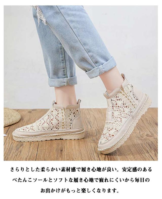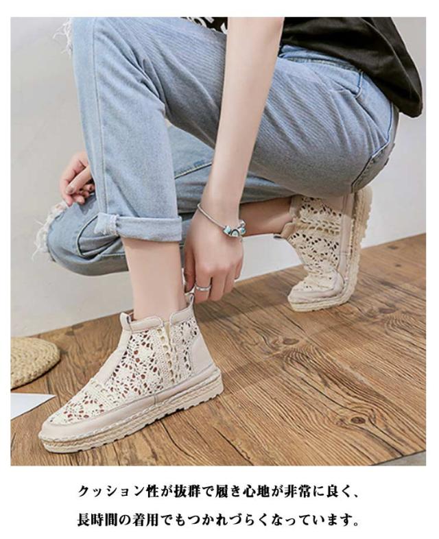 ブーツ スポサン サマーブーツ 美脚 大人 疲れない ブーツ 夏 メッシュ 編み上げブーツ レース ローヒール フラット 歩きやすい 痛くない レディース 靴 レースショートブーツ 森ガール 透かし 通気性 白 ベージュ 夏用ブーツ