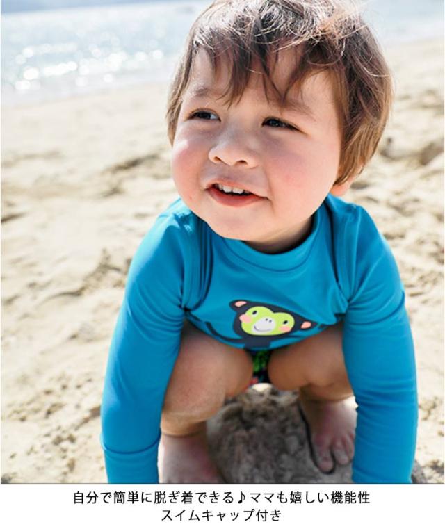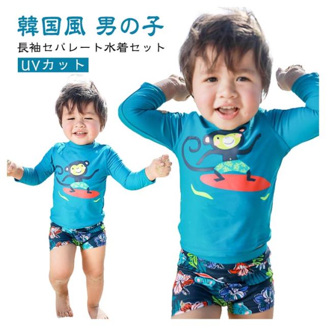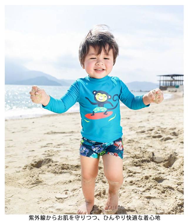 ベビー水着 キッズ 子供用 男の子 セットアップ 長袖 スイミングキャップ付き ラッシュガード かわいい ボーイズ 幼児 紫外線対策 UVカット 夏 セパレート水着 水遊び プール 海 海水浴