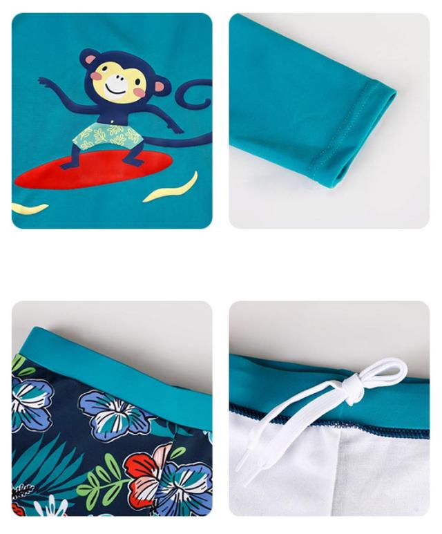 | 韓国風 男の子 長袖セパレート水着セット 軽やか・爽やか・おしゃれに!夏の水遊びに大活躍 上下セパレートタイプ+ラッシュガード長袖トップス 日焼け対策ばっちり!腕も肌も守れる安心設計 後ろファスナー&ウエスト紐付き 自分で簡単に脱ぎ着できる♪ママも嬉しい機能性◎ スイムキャップ付き お揃いデザインでトータルコーデ完成! UVカット・接触冷感素材 紫外線からお肌を守りつつ、ひんやり快適な着心地 通気性・速乾性抜群の軽量生地 水遊び後もさらっとドライ、元気に走り回れる! 柔らかストレッチ素材使用 お肌にやさしく、動きやすいから快適フィット | |