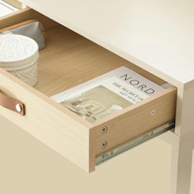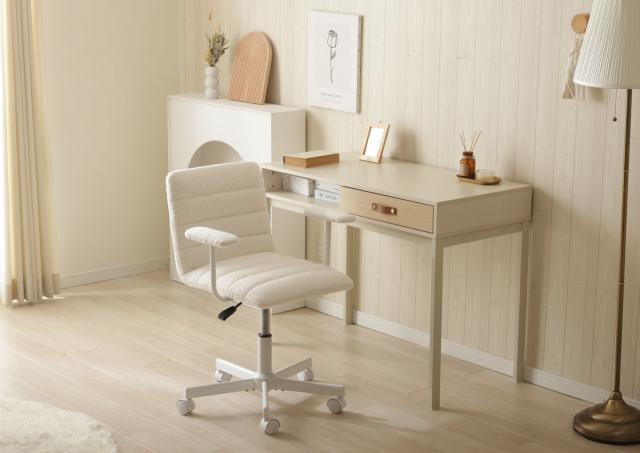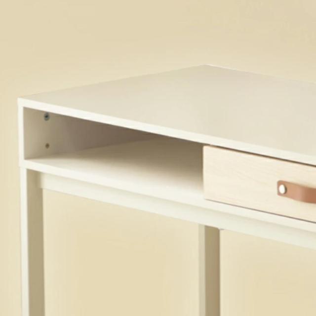 清潔感のある白を基調としたカラーで、空間に調和しやすいデザインのデスクです。引出しとオープンスペースを搭載しているため、デスク周りの小物をまとめて収納することができ、お部屋がすっきりと片付きます。