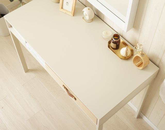 一人暮らしのお部屋や作業部屋においても圧迫感のないサイズながら、しっかり作業スペースも確保できる広さの天板です。小型のパソコンやノートパソコンでの作業なら、スペースに余裕をもって行うことが可能です。