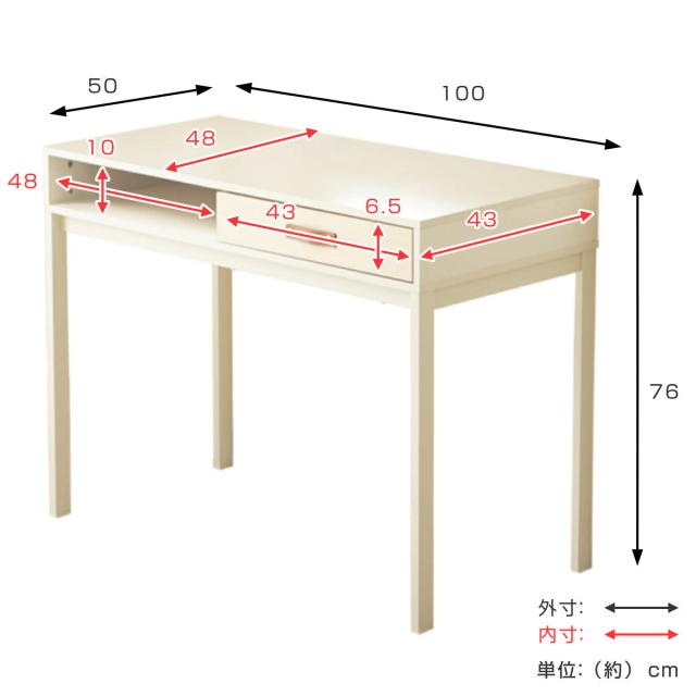 | サイズ | 約 幅100×奥行50×高さ76(cm) 【内寸】 オープン収納スペース 約 幅48×奥行48×高さ10cm 引出し 約 幅43×奥行43×高さ6.5cm |