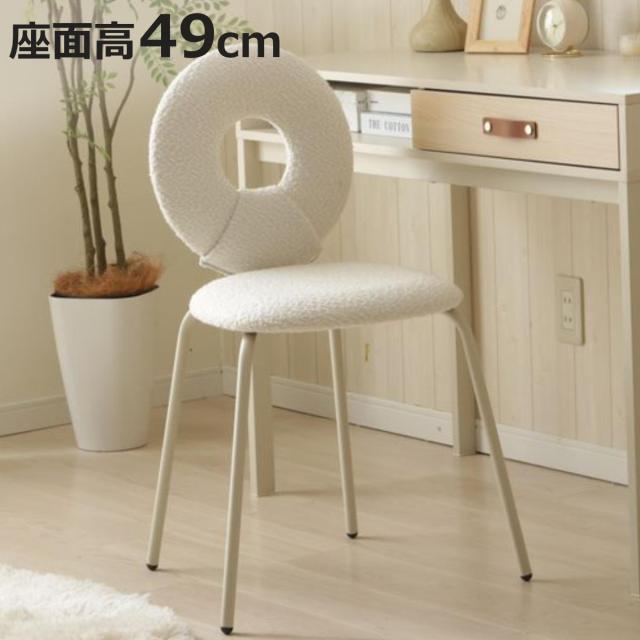 ダイニングチェア 座面高49cm ブークレ生地 ワークチェア モダンチェア ( ダイニング チェア チェアー イス 椅子 いす デスクチェア ふわふわ アームレス 食卓椅子 可愛い 背もたれ ドーナツ ファブリック ホワイト 白 )