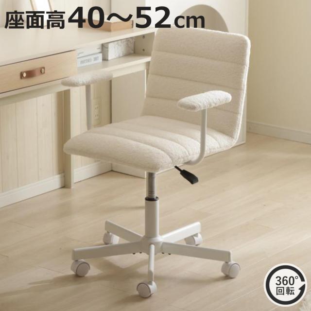 オフィスチェア 座面高40〜52cm 肘付き 昇降式 ブークレ生地 ( ワークチェア パソコンチェア 肘掛け キャスター付き ふわふわ 学習椅子 勉強椅子 デスクチェア 座面 高さ調節 オフィス 仕事 おしゃれ )