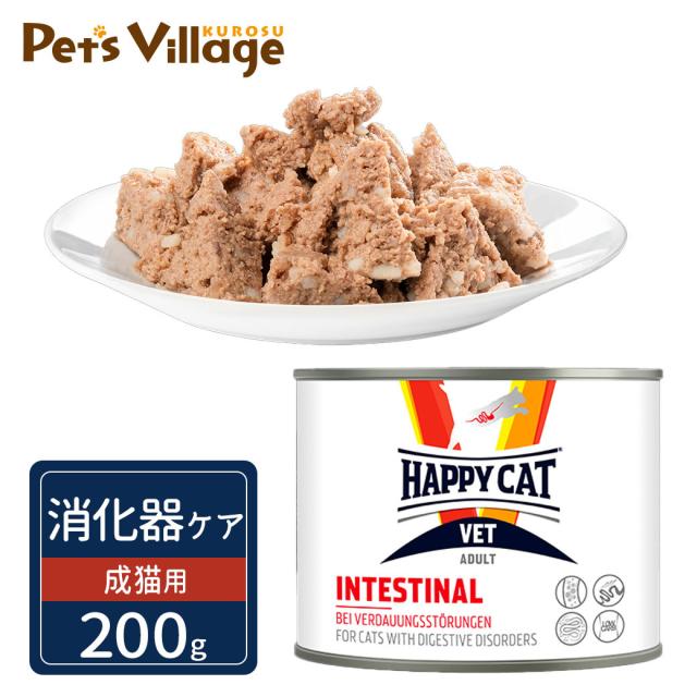 HAPPY CAT VET インテスティナル(消化器ケア)ウェット缶は、急性および慢性の消化器疾患に対応した食事療法食で、高消化性の原材料を使用し、炭水化物含有量を調整したグルテンフリーのレシピです。