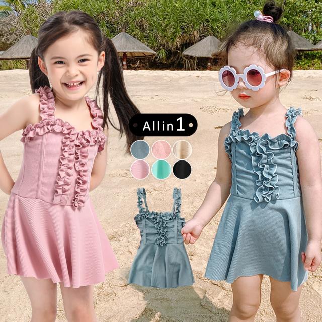 キッズ 水着 女の子 ワンピース オールインワン キャミソール ノースリーブ フリル お洒落 ベビー ジュニア 海 黒