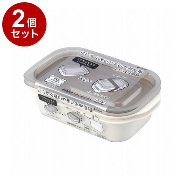 【単品2個セット】 とにかく洗いやすいお弁当箱 270mL 2個組 ライトグレー イノマタ化学