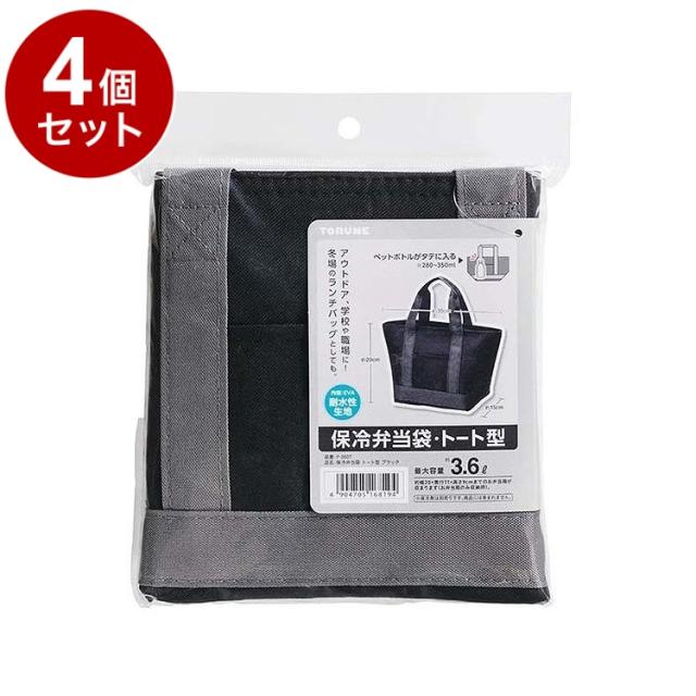 【単品4個セット】 保冷弁当袋 トート型 ブラック トルネ P-3607【送料無料】