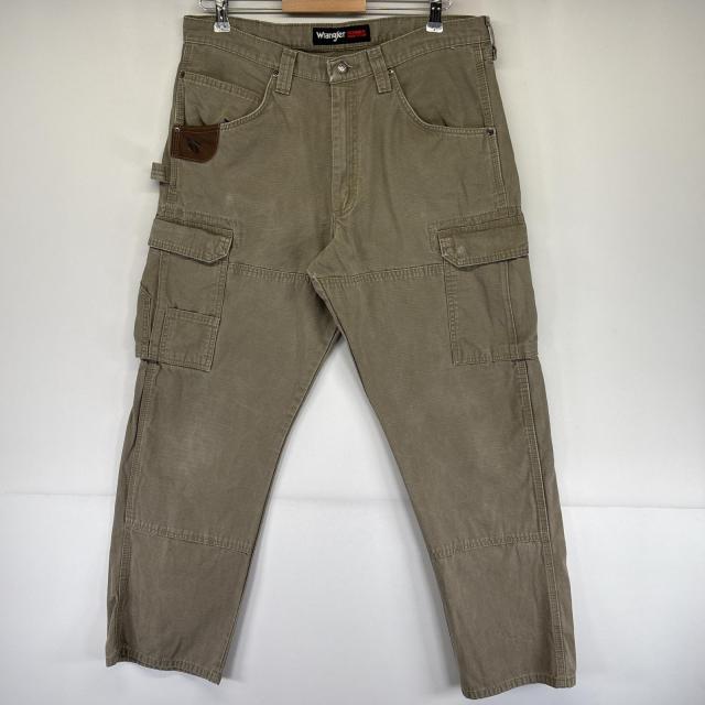 古着 ラングラー Wrangler ワークパンツ ダック地 カーゴパンツ ペインター ダブルニー 作業着 w34 L32 ベージュ系 メンズ