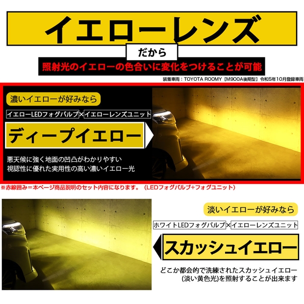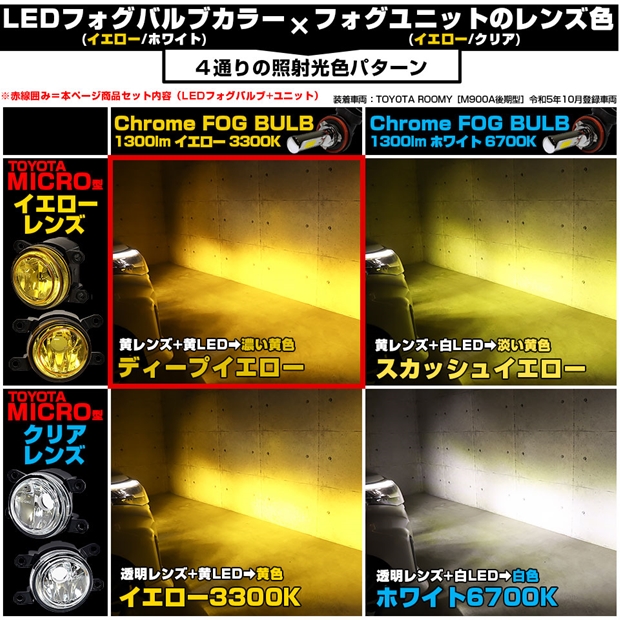 トヨタ ルーミー (M900A/M910A 後期) 対応 H11 led MICRO クロームフォグ 1300lm イエローガラスレンズ フォグランプキット イエロー 44-H-8