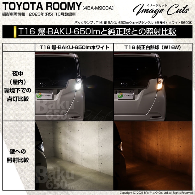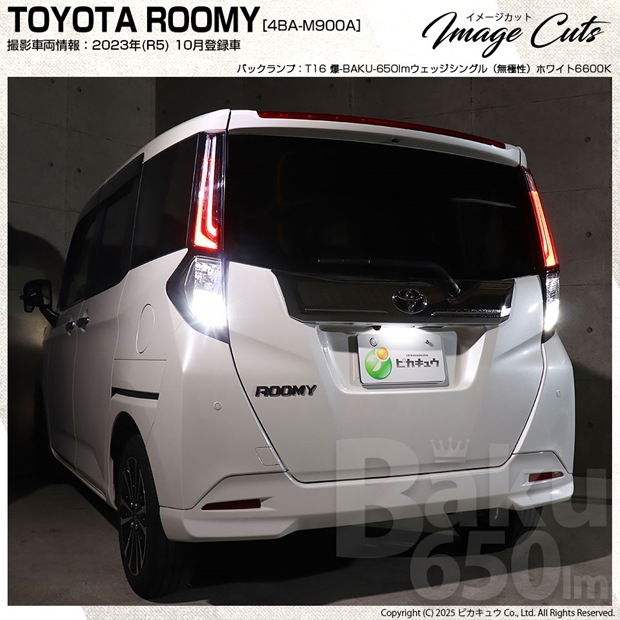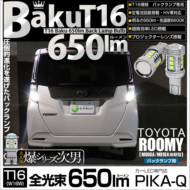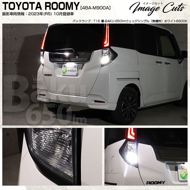 トヨタ ルーミー (M900A/M910A 後期) 対応 バックランプ LEDバルブ T16 爆-BAKU-650lm ホワイト 6600K 2個 後退灯 7-B-4