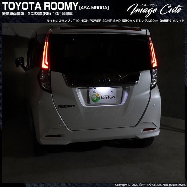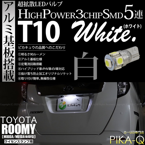 ピカキュウ,LED専門店,LEDバルブ,LED,SMD,T10,W5W,T10 HIGH POWER 3CHIP SMD 5連ウェッジシングル球,ホワイト,ライセンスランプ,番号灯,トヨタ,TOYOTA,ルーミー,ROOMY,M900A,M910A