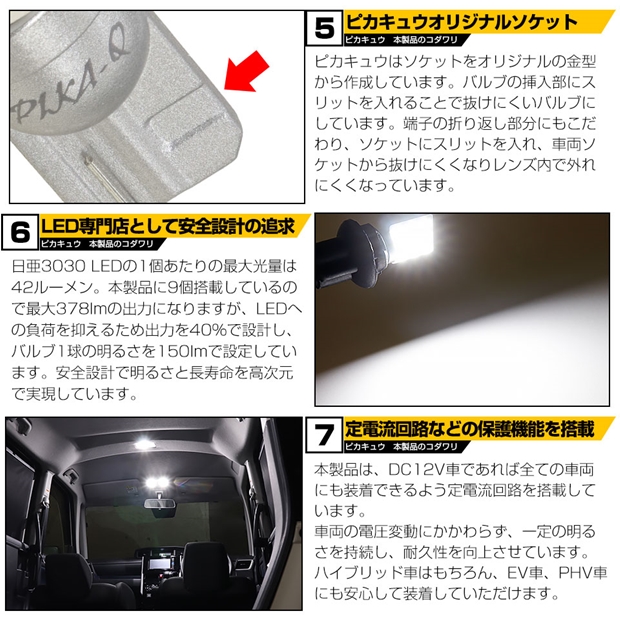 ピカキュウ,LED専門店,LEDバルブ,LED,SMD,T10,W5W,日亜化学工業,日亜,3030,ルームランプ,カーテシ,バニティ,爆光,150lm,150ルーメン,ROOM,トヨタ,TOYOTA,ルーミー,ROOMY,M900A,M910A