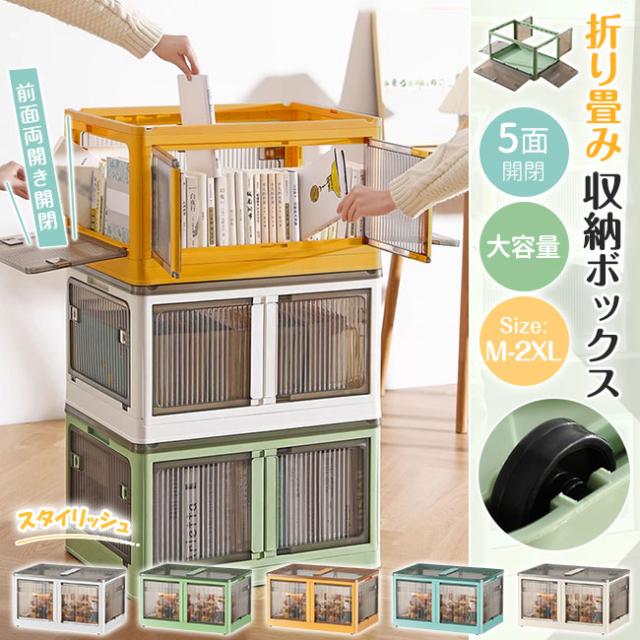 収納ボックス サイズL 折りたたみ 5面開閉 前面両開き開閉 大きめサイズ 隠れキャスター付き コンテナー 組立簡単 積み重ね 新生活 災害用 おしゃれ 衣装布団 収納ケース 大容量 物入れ 移動便利 透明 ボックス プラスチック