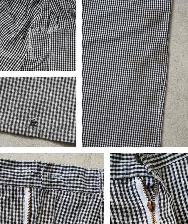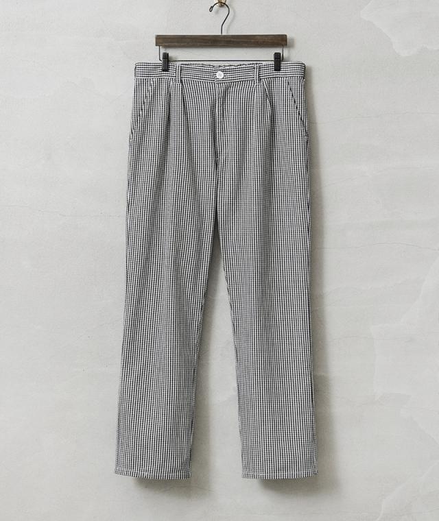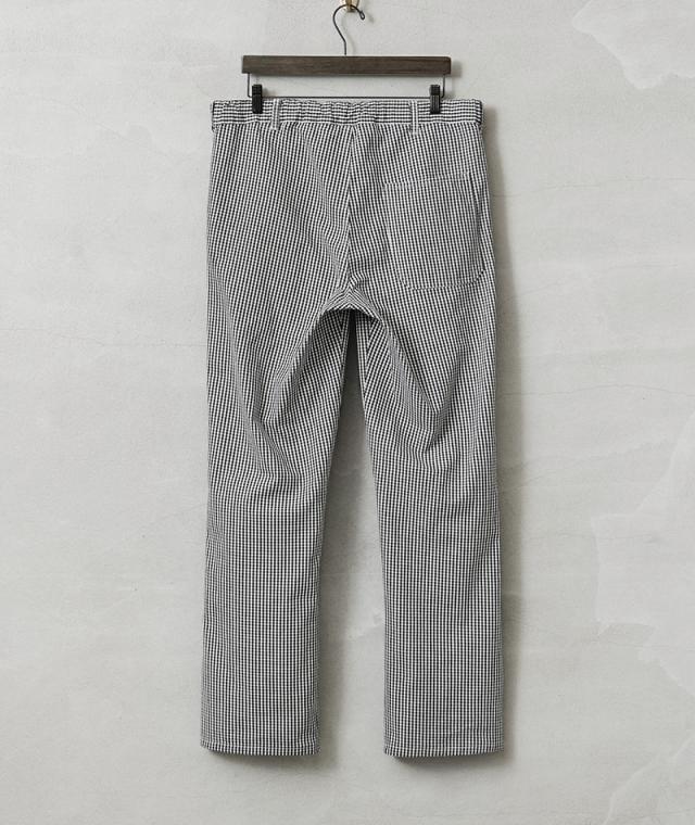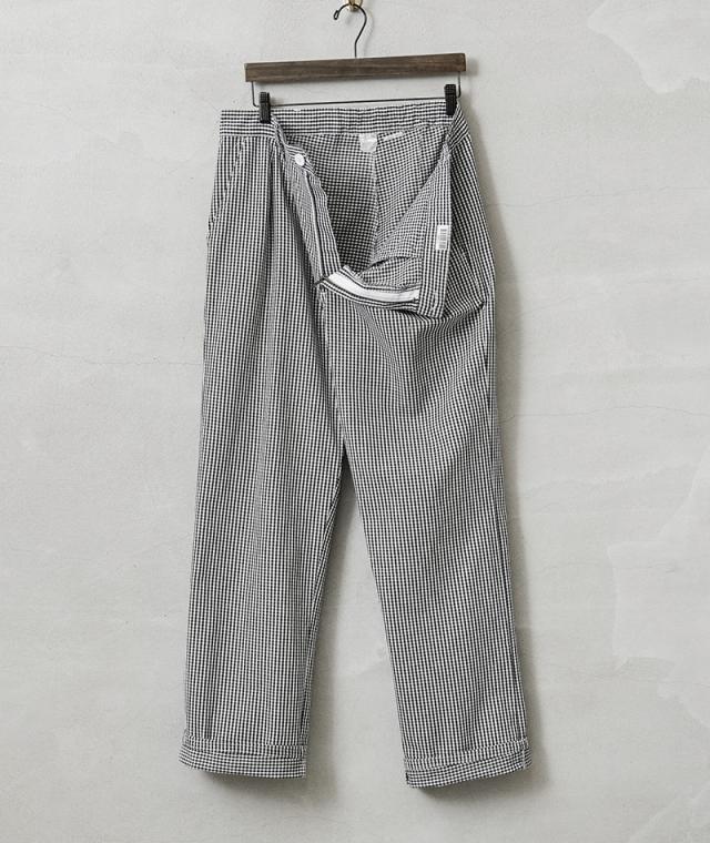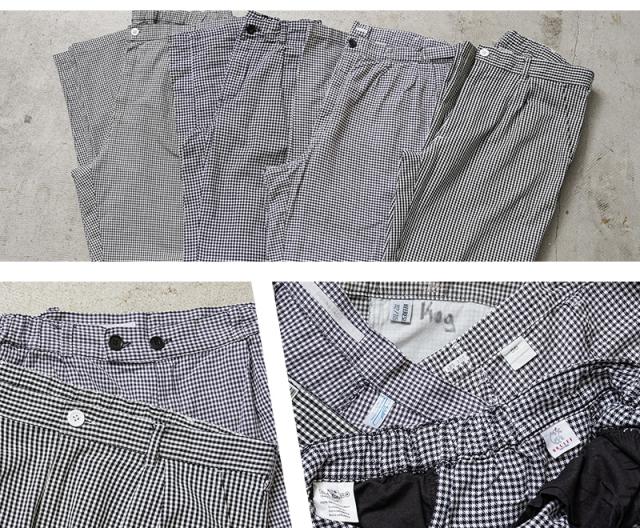 ブラックとホワイトで構成された、ギンガムチェックのオーストリア軍放出のシェフパンツ(コックパンツ)。ブラックとホワイトで構成された、ギンガムチェックのオーストリア軍放出のシェフパンツ(コックパンツ)。フードハンドラーが使用するため、汚れが目立ちにくいギンガムチェックが採用されています。フロントには動きやすいタック入り、両サイドのスラッシュポケットとバック右側に1箇所デザインされたパッチポケットがシンプルで使いやすいデザイン。 素材には柔らかくドライな風合いが特徴のライトオンスのポリコットンを使用しており、夏でも快適に着用できます。