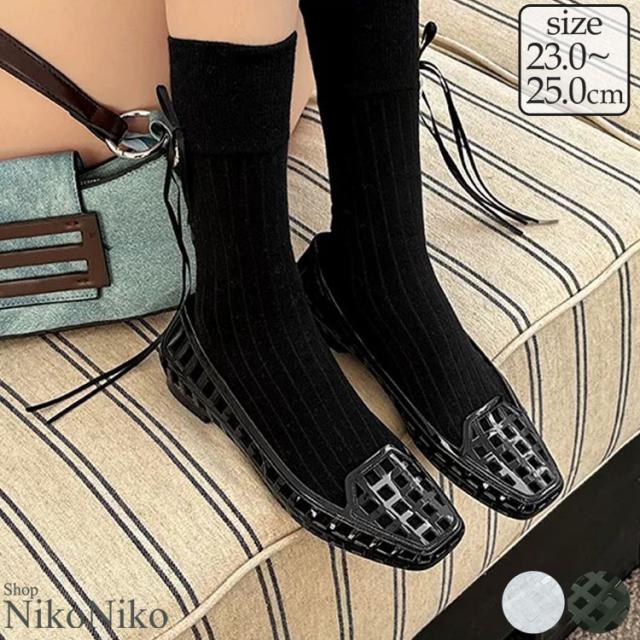 全品送料無料一部除く スクエアトゥ メッシュ バレエシューズ【即納】サンダル パンプス フラットサンダル ラバーサンダル メッシュパンプス ビーチサンダル 穴あき 歩きやすい 履きやすい PVC レディース 韓国 Y2Kファッション 韓国ストリート 流行り トレンド かわいい