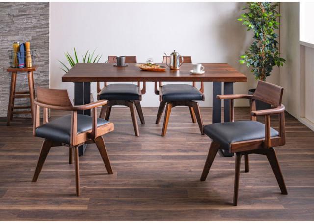 テーブル 幅150cm ウォールナット | テーブル 幅150cm オーク無垢 | テーブル 幅180cm ウォールナット | テーブル 幅180cm オーク無垢 | 回転チェア |