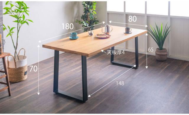 ボリューム感ある天然木で作られた天板とアイアン脚の組み合わせで、高級感の中にカジュアルを取り入れたデザインのダイニングテーブルです。時代に左右されないシンプルなデザインで、モダンテイストなど幅広いコーディネートにマッチします。