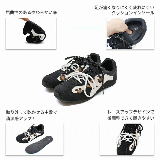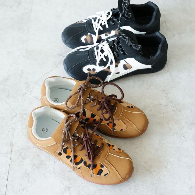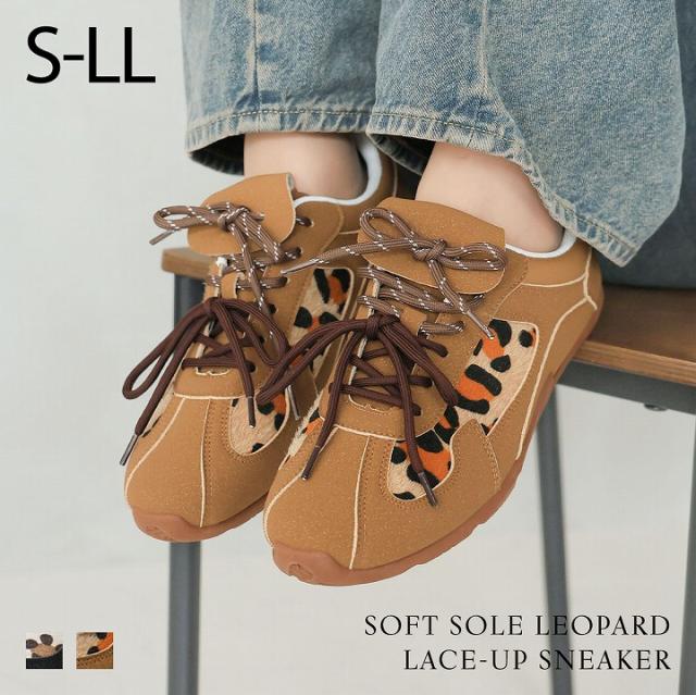 やわらかソールレオパードレースアップスニーカー