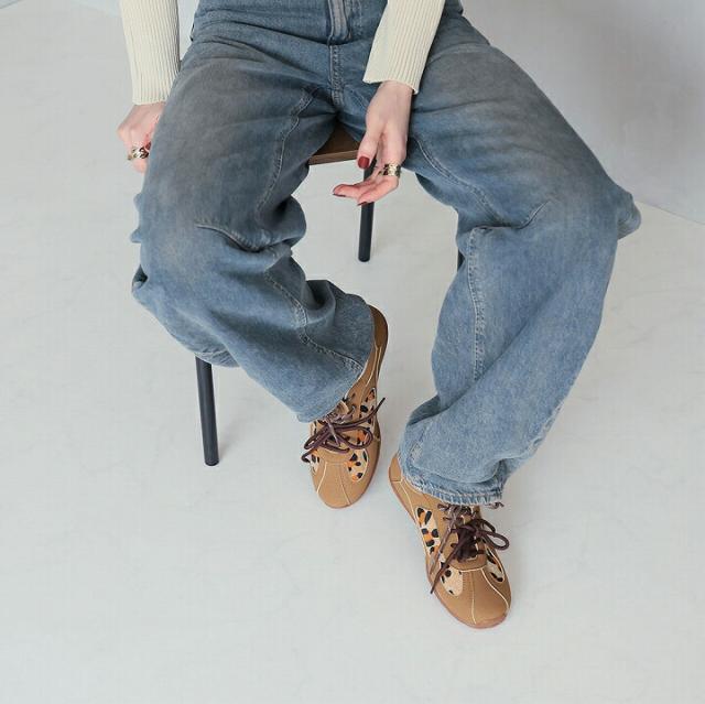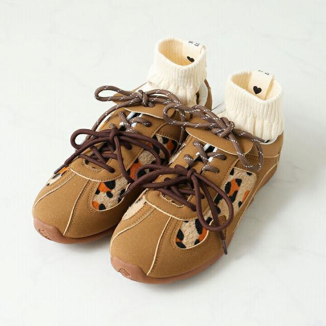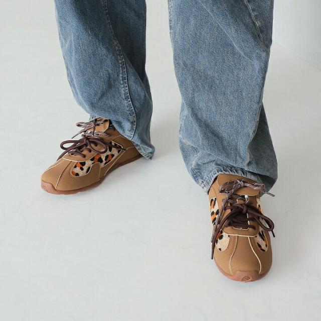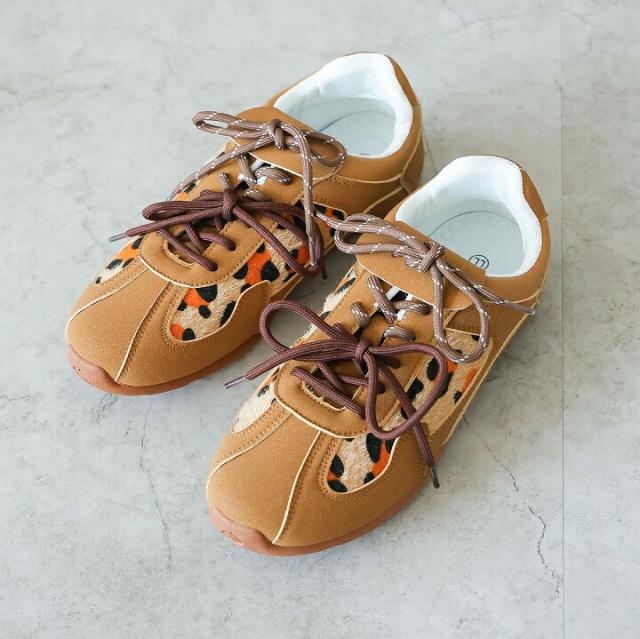 ハラコ素材の大胆なレオパード柄をアクセントにした、感度高めのトレンド詰め込み系スニーカー。