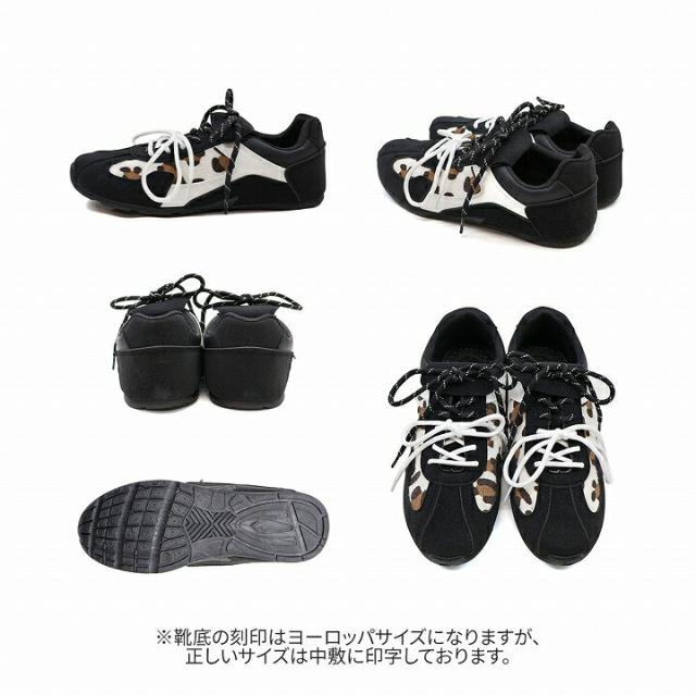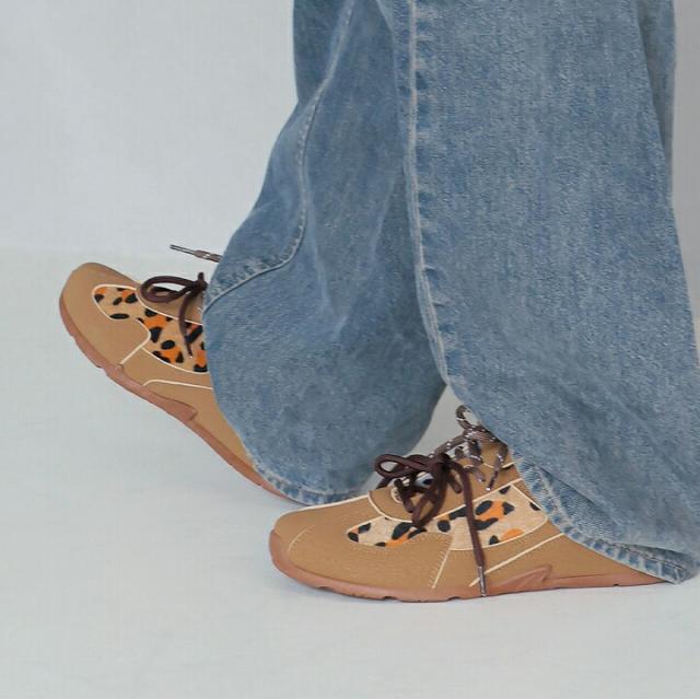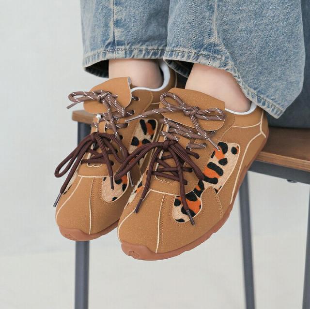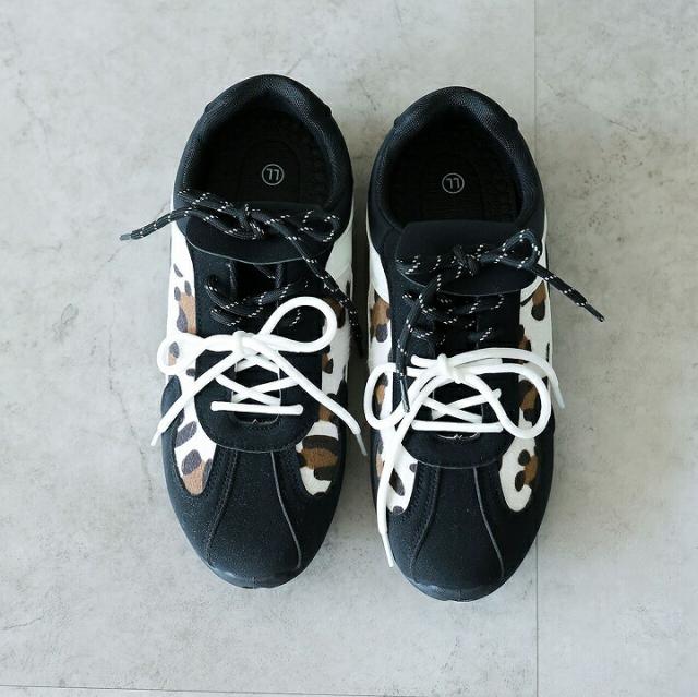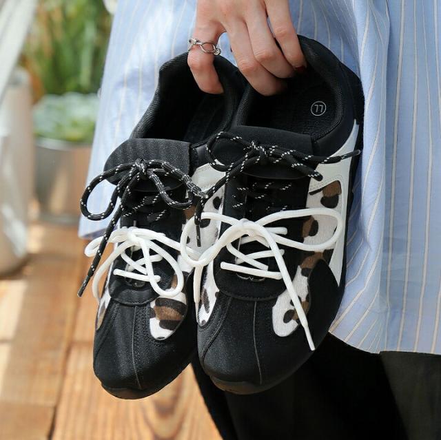 ・ダブルのシューレースリボン×折り返しフラップ×レオパード柄×Tトゥデザインでトレンド詰め込み系スニーカー
