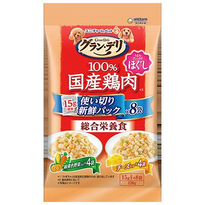 【16個セット】ユニ・チャーム グラン・デリ100%国産鶏肉パウチ使い切りパック総合栄養食ほぐし高齢犬用緑黄色野菜&チーズ120g