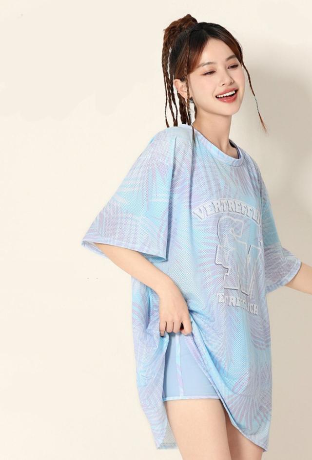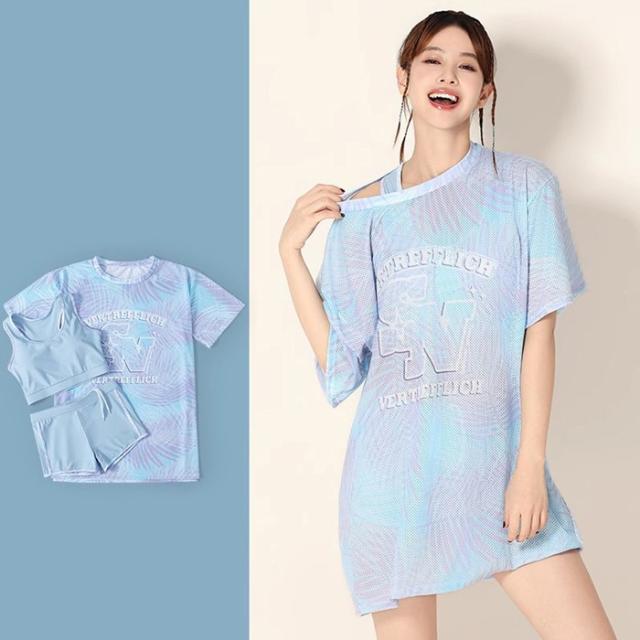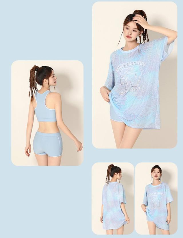 3点セット 水着 レディース 体型カバー タンキニ 大きいサイズ ラッシュガード 長袖 セパレート 露出控えめ インナーパンツ ボーイレッグ ワイヤーなし パッド付 海 プール リゾート おしゃれ ぽっちゃり 韓国風 中学生 高校生 大学生 大人 ブルー 水陸両用 M-3XL df115zbzbld