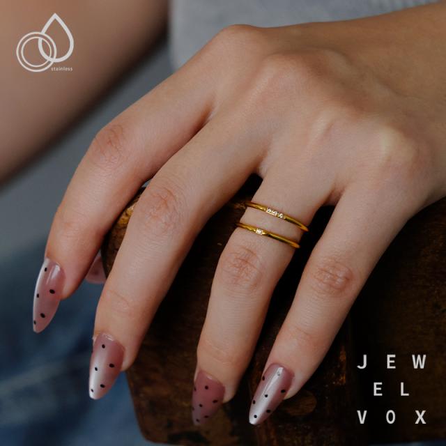 指輪 リング レディース ステンレス製 金属アレルギー ストーン 1粒 3粒 2個セット ゴールド 9号 11号 14号 細い 細め 極細 デイリー カジュアル シンプル オシャレ 女性 ギフト プレゼント