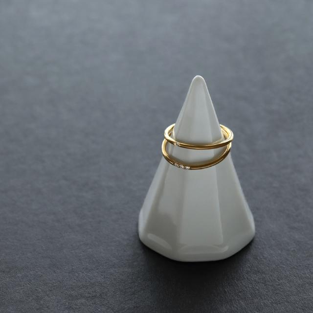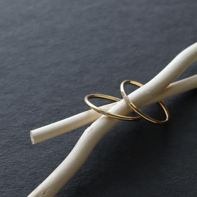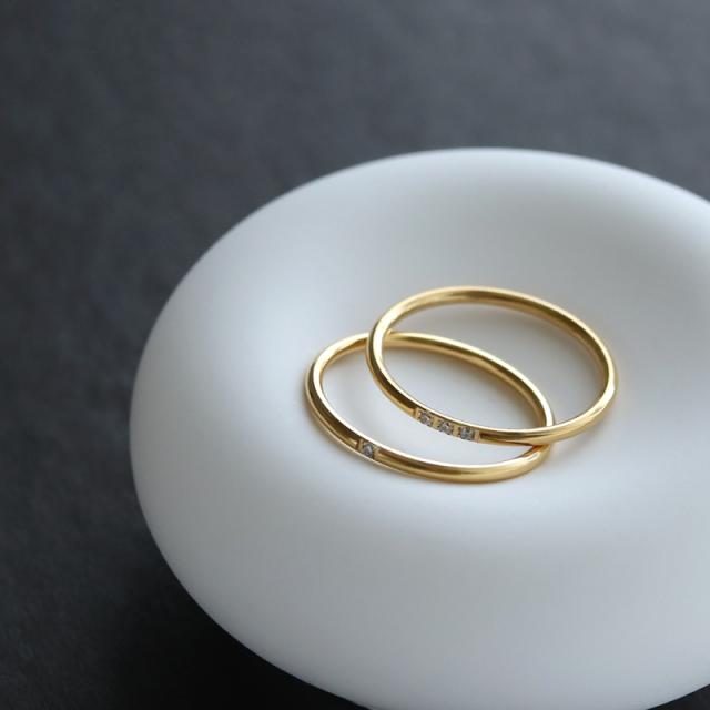 シンプルなゴールドの甲丸リングに控えめでさりげないストーンのアクセントをプラスした上品なデザイン。