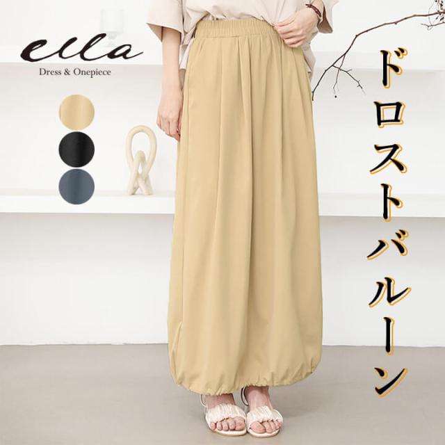 スカート 2way Aライン バルーンスカート マキシ丈 レディース カジュアル 大人 可愛い きれいめ ロングスカート ドロスト付き 薄手 ゆったり 大きいサイズ ロング丈 ボトムス シンプル 体型カバー 20代 30代 40代 50代 ウエストゴム 脚長効果 ストレスフリー お出掛け 旅行 トラベル プレゼント ベージュ ブラック ブルーグレー 肌色 黒 青灰 灰色 M L 9号 11号 rt9566