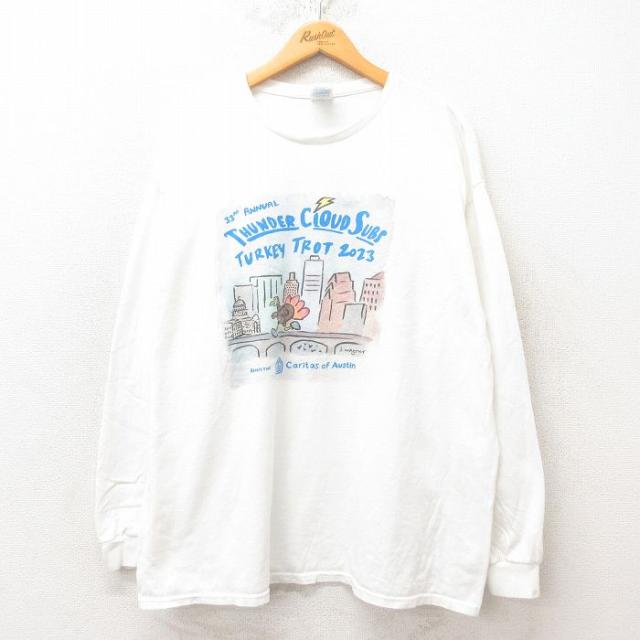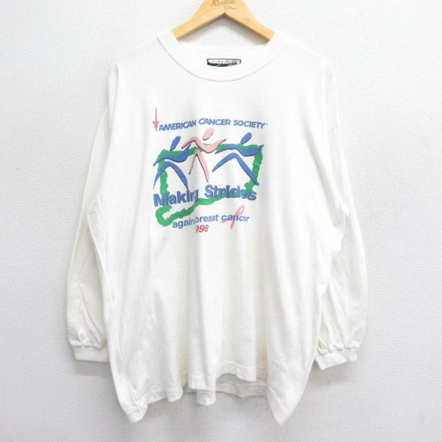 古着 長袖 ビンテージ Tシャツ メンズ 90年代 90s マラソン INDIANAPOLIS 企業広告 大きいサイズ コットン クルーネック 白 ホ 中古 古着