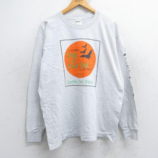【商品名】 XL★古着 長袖 ビンテージ Tシャツ メンズ 90年代 90s マラソン INDIANAPOLIS 企業広告 大きいサイズ コットン クルーネック 白