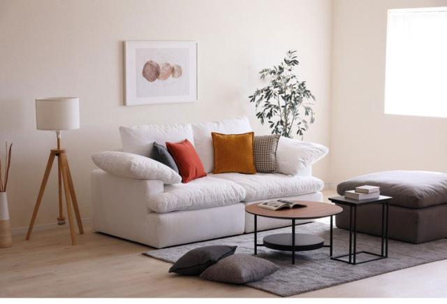 ソファの上で飛び跳ねるとSバネを止めている部分が壊れて外れてしまう可能性があります。異音の原因になるため座面に強い衝撃を与えないようにお気を付けください。※組み立て有