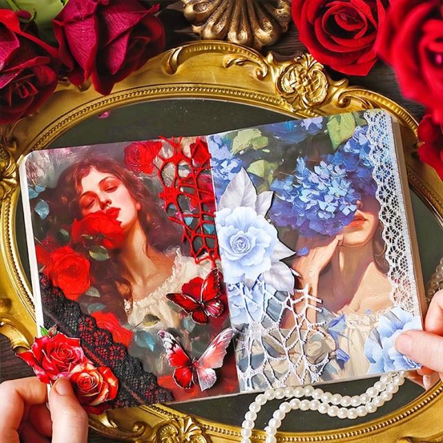 金箔押し 型抜き シールシート 背景シール 特油 光沢 凹凸 立体感 人物 外国 女性 女の子 全身 イラスト レトロ PETシール 背景紙シール コラージュ素材 背景 シール フレークシール 耐水シール 鮮やか 華やか シール デコレーション ハンドメイド 手帳 日記 DIY