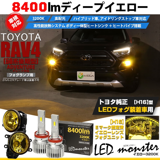 トヨタ RAV4 (50系 後期 ADVENTUREグレード) LED MONSTER L8400 イエロー ガラスレンズ フォグランプキット 8400lm イエロー H16 44-I-4