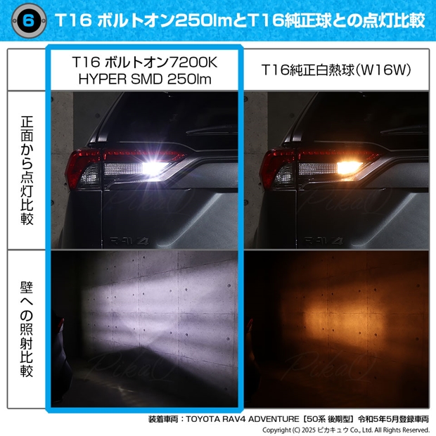 LED,ピカキュウ,LED専門店,LEDバルブ,T16ウェッジ,T16 NEW ボルトオンSMD,250ルーメン,蒼白色 7800K,青白色,EURO WHITE,ユーロホワイトバックランプ,後退灯,トヨタ,TOYOTA,ラブ4,RAV4,MXAA54,AXAH54,ADVENTURE