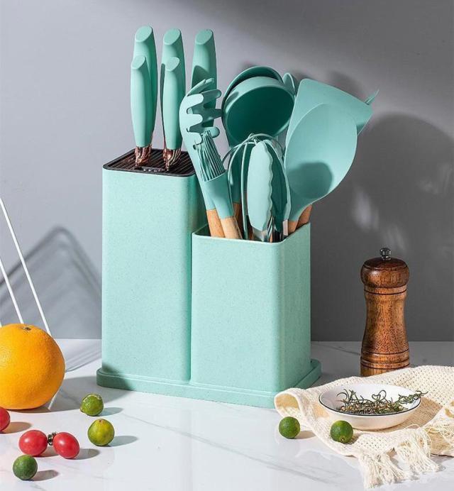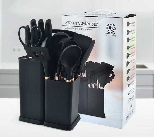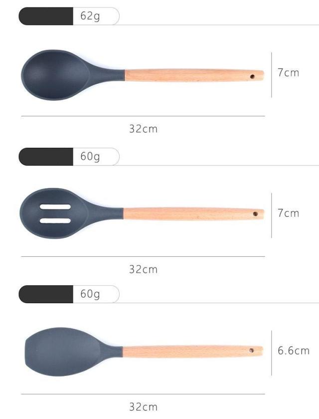 送料無料 キッチンツール クッキングツール 安全素材 調理器具 食品級シリコン 木製 収納容器付き 調理器具 料理器具 製菓器具 フライ返し/スプーンおたま セット