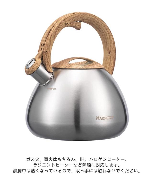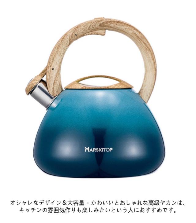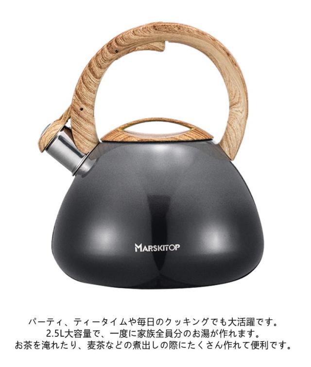 ケトル ケットル IH対応 ホイッスルケトル ガス火対応 大容量 かわいい 笛吹ケトル キッチン雑貨 やかん 湯沸かし ステンレス 2.5L 広口 木柄ハンドル 湯沸かしケトル グリーン おしゃれ キッチン用品 ステンレスケトル 木目ハンドル 緑 ケトル ブルー 黒