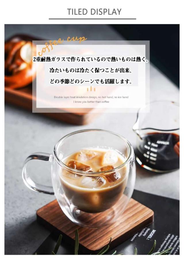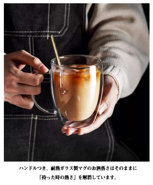 グラス ダブルウォールグラス 二重グラス 350ml カップ クリア 取手付き コップ ハンドルなし 大容量 250ml 450ml 耐熱ガラス 透明 北欧 2個セット おしゃれ カップ グラス 耐熱 保温 保冷 キッチン用品 ギフト プレゼント