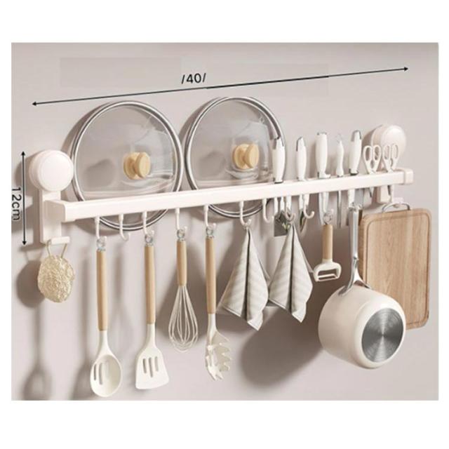 壁掛けフック キッチンツールフック 強力吸盤 キッチンツール収納 ダブルバー 可動式フック キッチンラック 8個フック 40cm 吸盤式 強力吸着 穴あけ不要 アルミ製 キッチンツールフック 調理器具 鍋蓋置き 包丁差し 防水 防錆 防油 キッチンツール 壁掛け 台所ラック